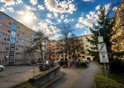 Parkování je možné na dvoře za bytovým dvorem na základě parkovací karty vydané magistrátem města.